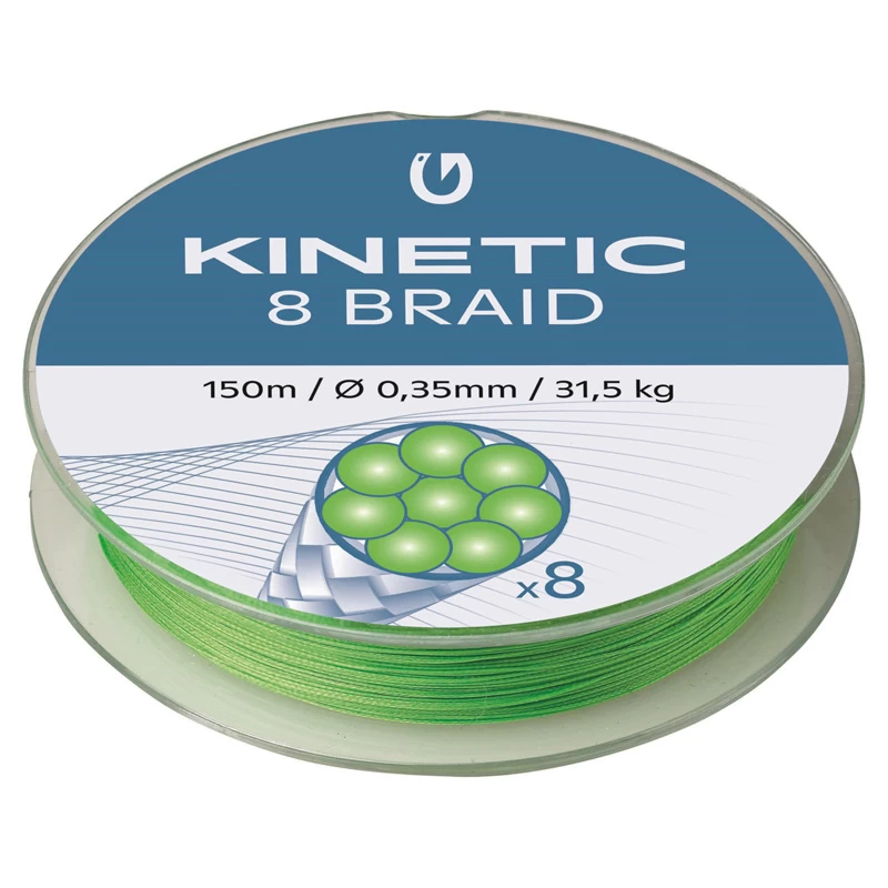 The 8-braid is Kinetics’ most advanced braided fishing line to date. Kinetic 8-braid is precision crafted from 8 woven fibers, resulting in unparalleled strength and a consistent profile that makes casting smoother than ever. It has virtually no stretch, so you’ll feel every touch.Ultra-high molecular polyethyleneMost advanced 8 Braid technologyOval shaped profileFluo green high viz colourBreaking strength0,14mm/11,5kg0,16mm/12,0kg0,20mm/15,0kg0,26mm/20,6kg0,30mm/23,8kg0,35mm/31,5kg
