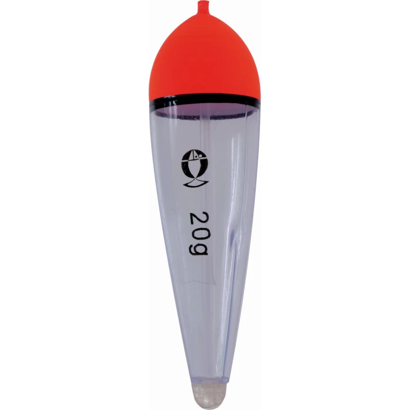 Großvolumiger Gleitschwimmer für das Angeln in raueren Gewässern. Transparente Basis, um Fische in seichten Flüssen nicht zu verschrecken.